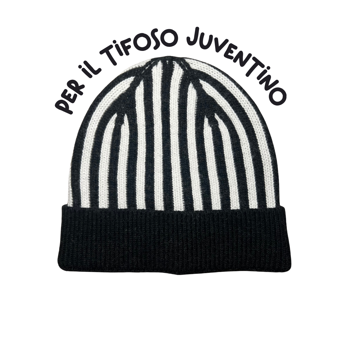 Cappellino con cashmere del Tifoso Juventino - Bianconero - Berretto morbido di qualità premium - Made in italy