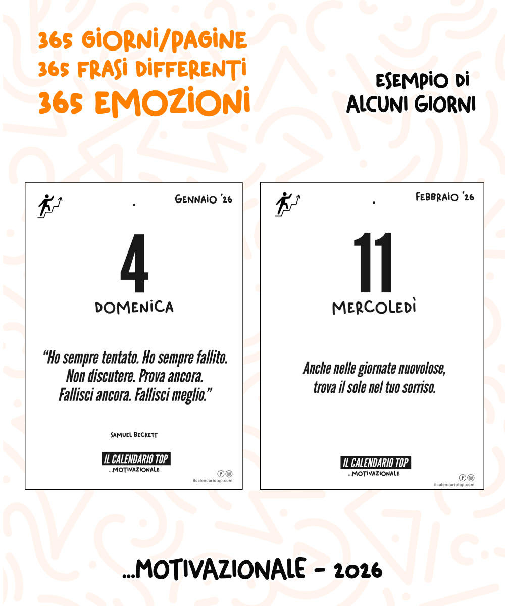 Il marchio “IL CALENDARIO TOP®” è registrato presso il Ministero Delle Imprese e del Made in Italy e qualsiasi tentativo di imitazione o uso non autorizzato del marchio potrà essere perseguito legalmente in conformità con le leggi italiane.
