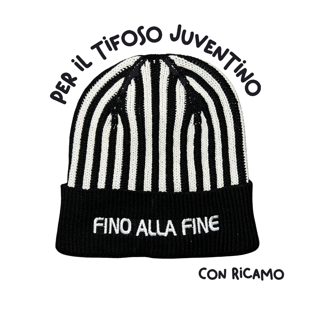 Cappellino con cashmere del Tifoso Juventino con ricamo: "Fino alla Fine" - Bianconero - Berretto morbido di qualità premium - Made in italy