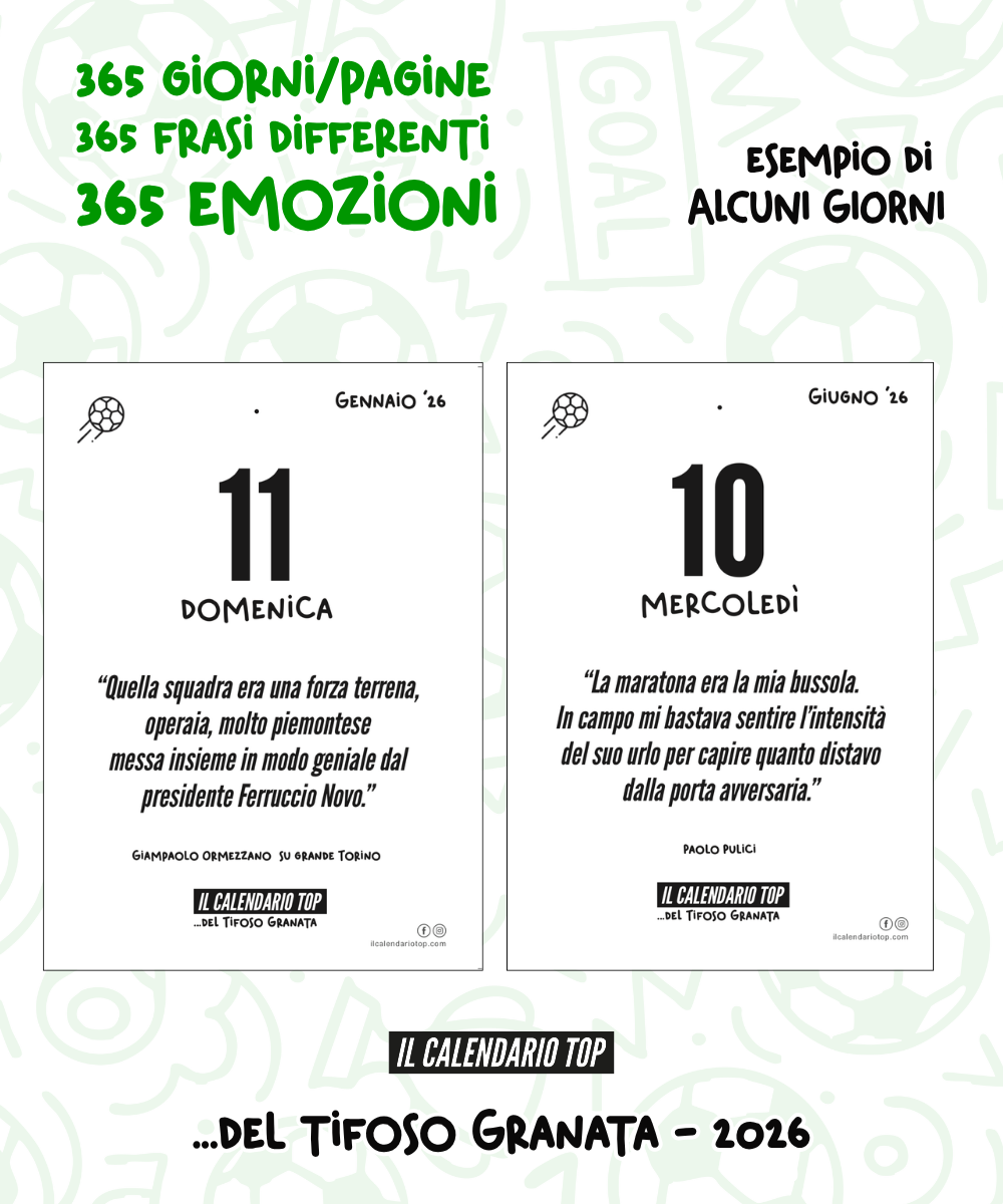 Il Calendario Top per il Tifoso Granata - 2026 ❤️